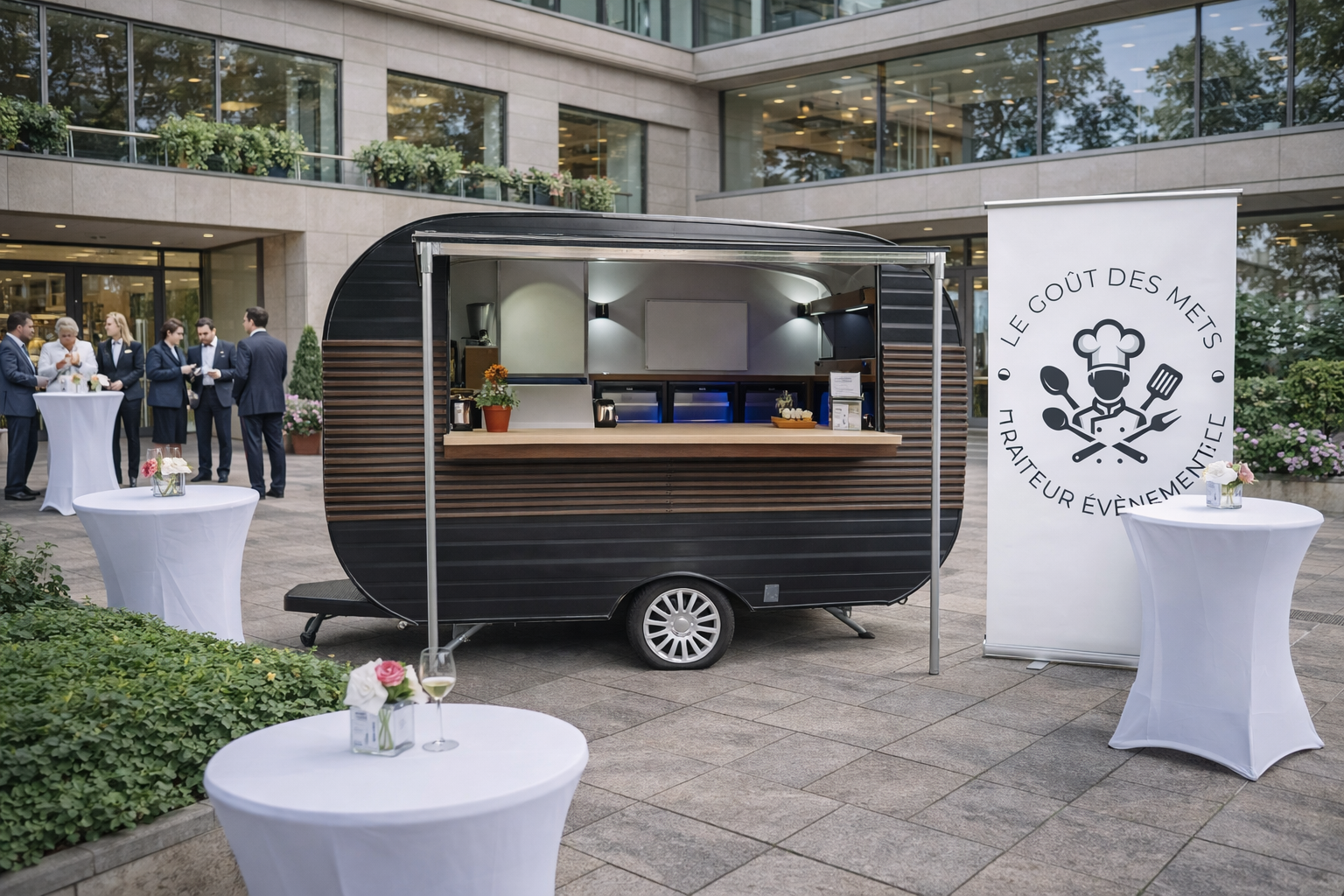 Food-truck : notre remorque mobile se déplace sur votre site pour un repas décontracté ou une soirée festive.