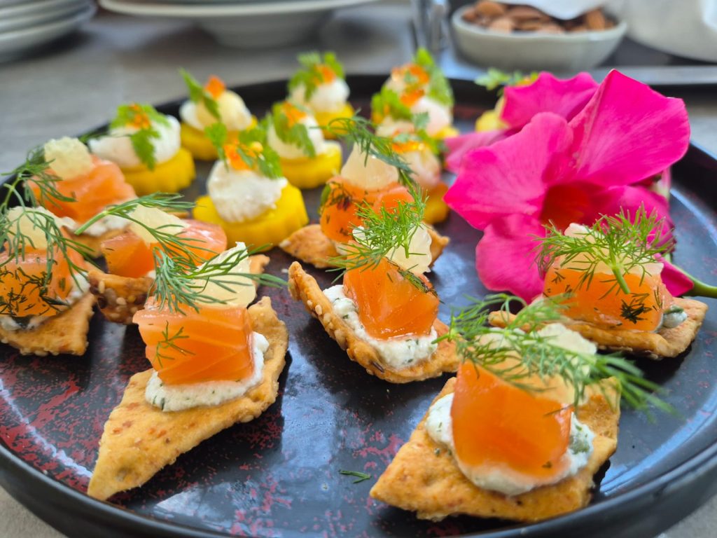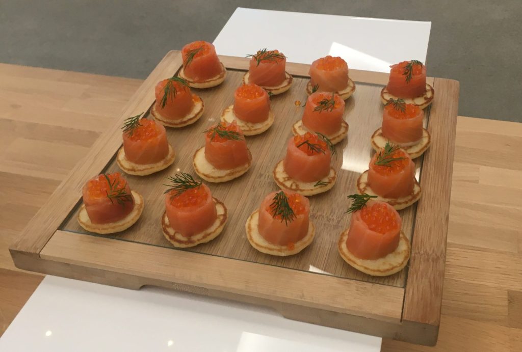 - Plateau de mini blinis crème saumon a l’aneth – 76€ TTC