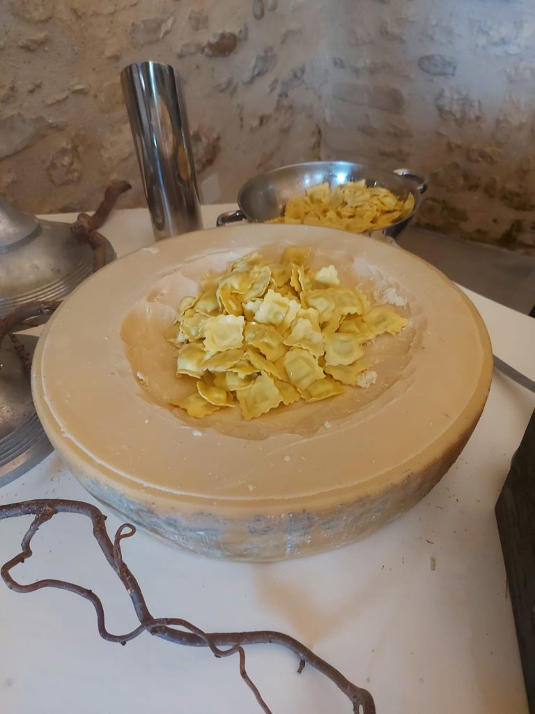 Risotto crémeux aux champignons servi dans sa meule de parmesan