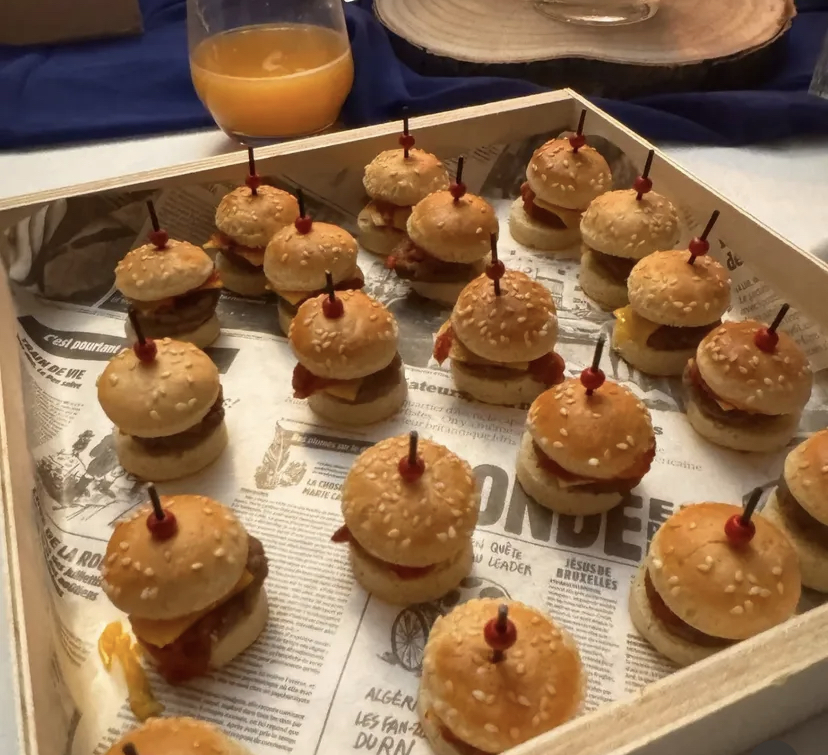- Plateau de 50 mini burger pur bœuf – 76€ TTC
